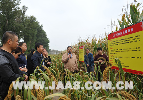 院刘慧涛研究员做玉米可降解地膜现场教学